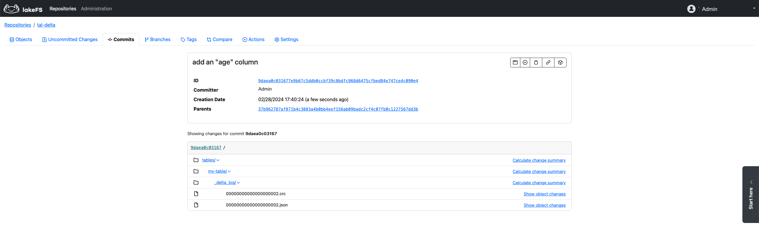Consequently, when making changes to a Delta table within the lakeFS environment, these changes are reflected as changes